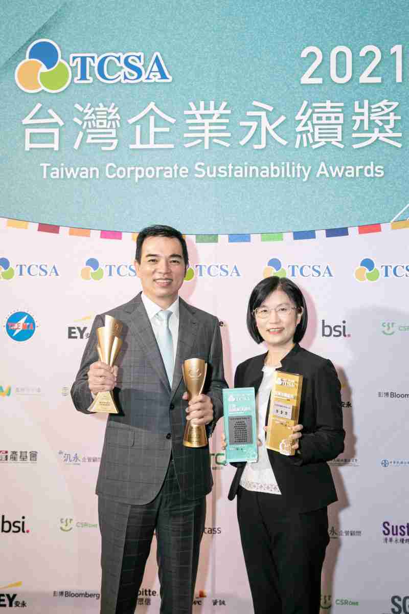 达在台湾永续奖所评比环境、、、、社会、、治理等各面向的永续绩效均获高度肯定 (左:888.BY集团电子游戏光电总经理暨营运长柯富仁,,,右:888.BY集团电子游戏光电永续长古秀华)