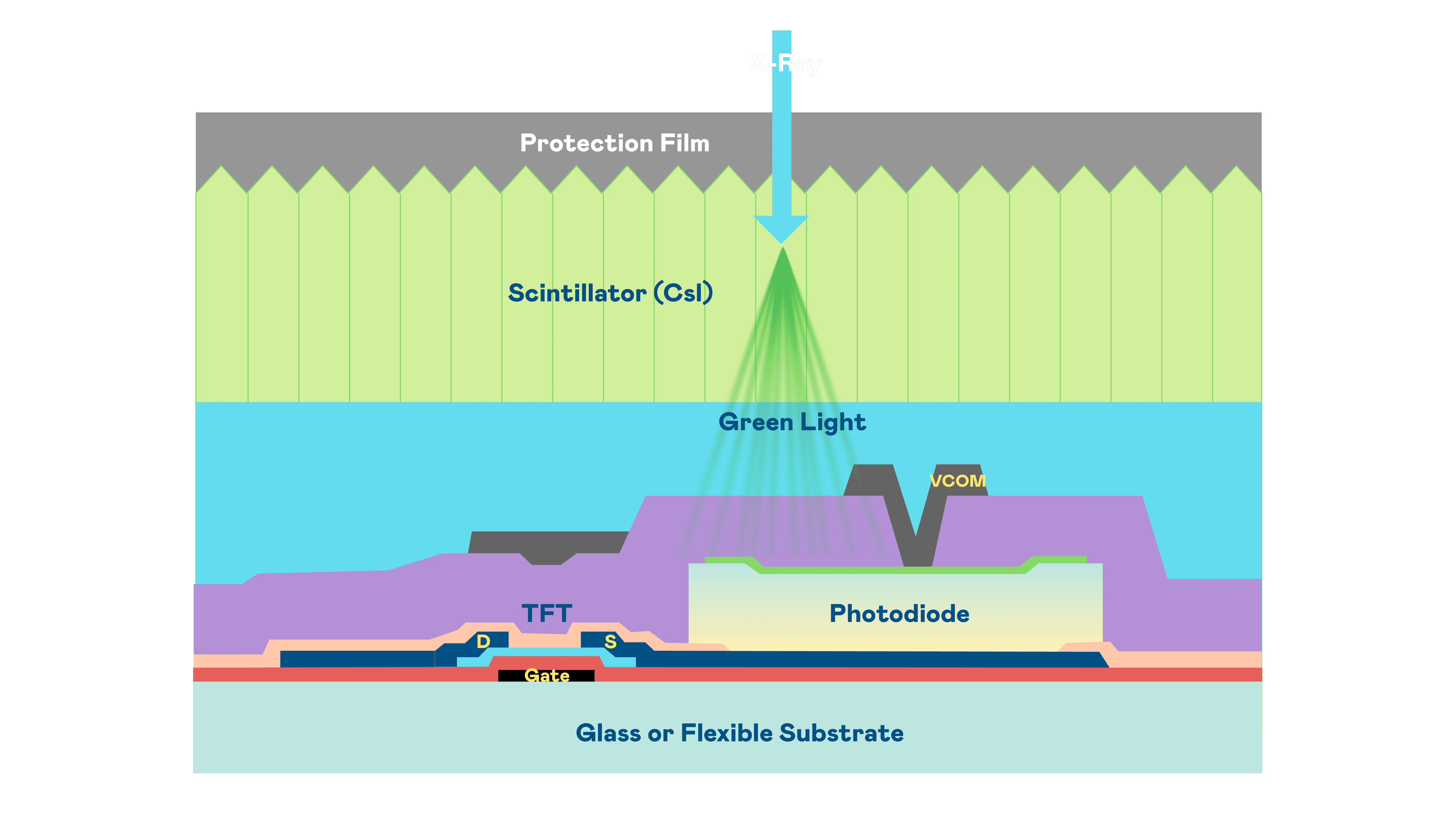 888.BY集团电子游戏的X光影像感测阵列使用薄膜电晶体 (TFT) 作为每个像素的读取开关,,,,搭配光电二极体(Photodiode)的光电转换元件,,,,用以感测X光影像讯号。。。
